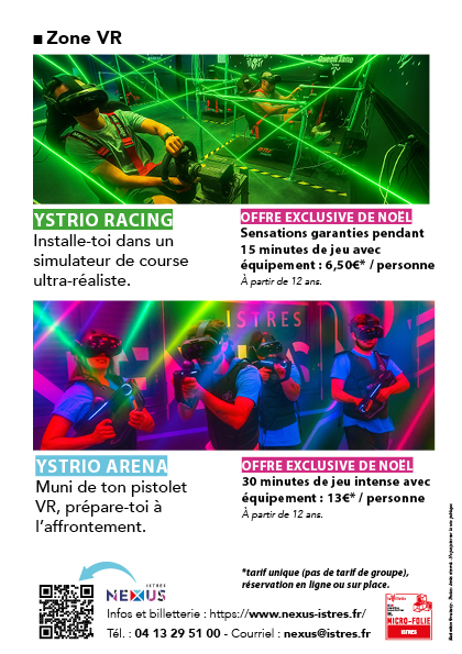 Du 20 décembre 2025 au 4 janvier 2026, le NEXUS passe en mode fêtes : enfilez le casque, et vivez la réalité virtuelle en famille ou entre amis, tous les jours de 13 h à 22 h au CEC Les Heures-Claires (Istres).